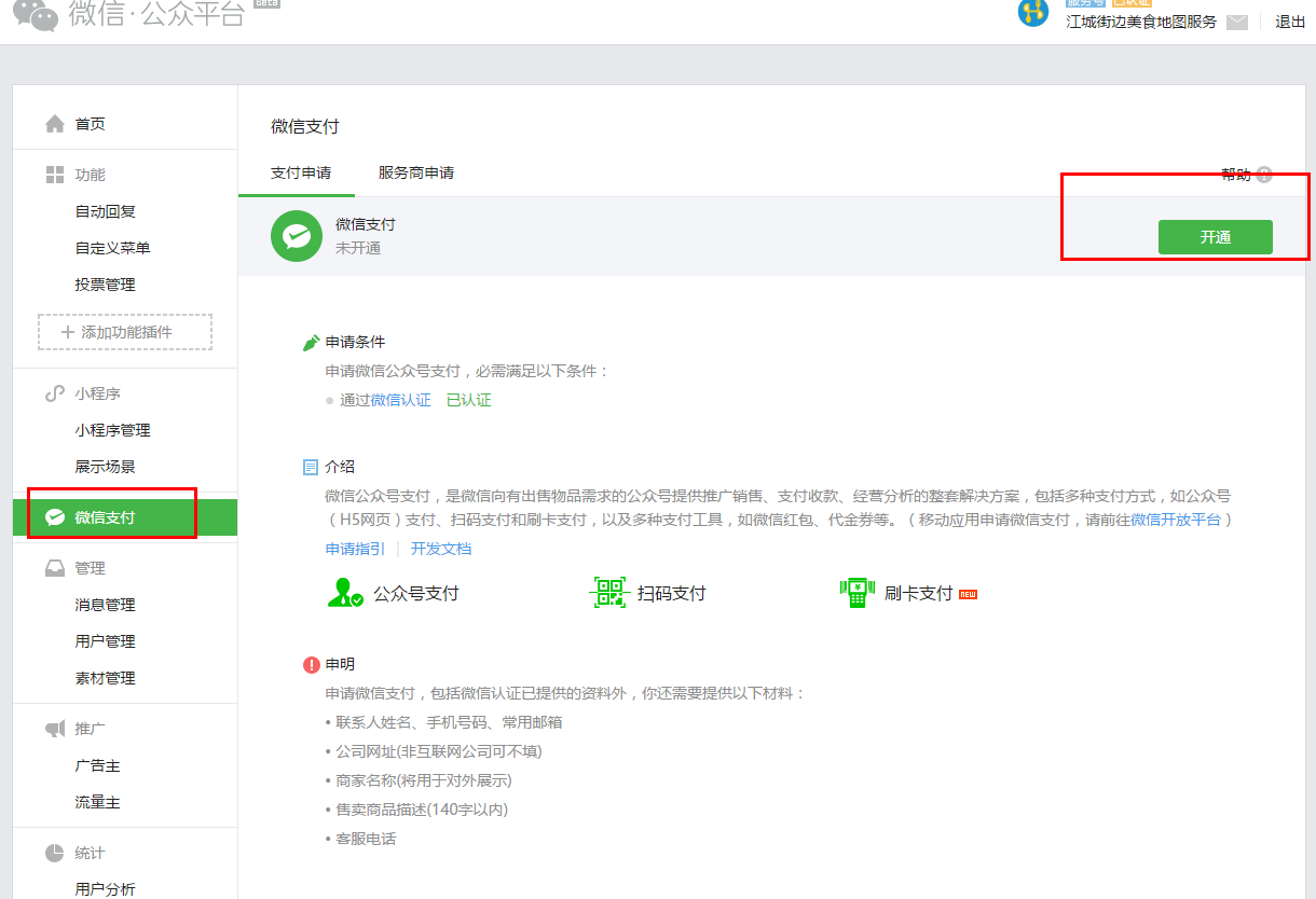 操作路径:登录微信公众平台->微信支付->开通