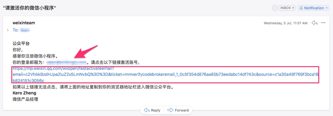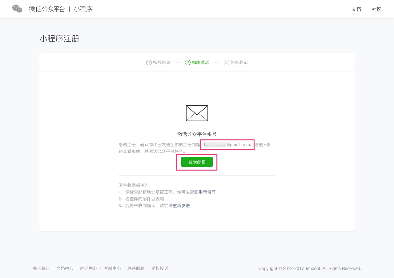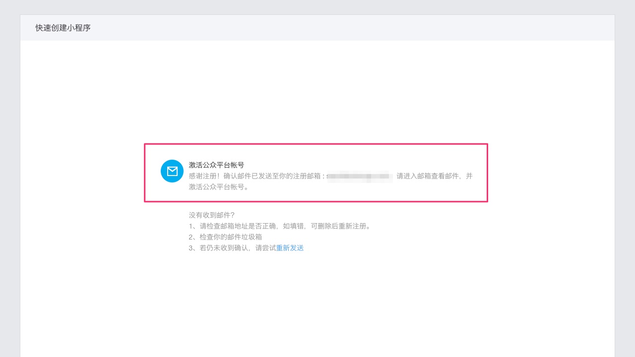 第六步:激活小程序账号,查看注册邮箱。