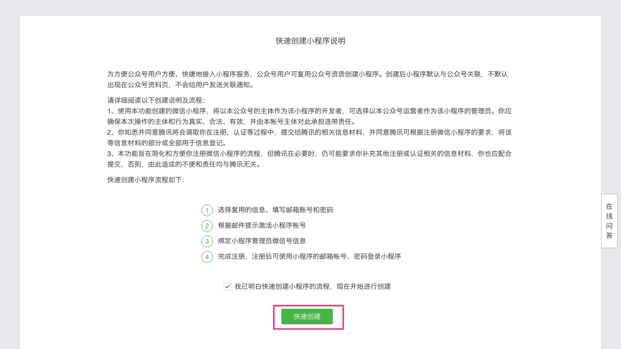 第三步:阅读并同意相关条款后,点击【快速创建】。