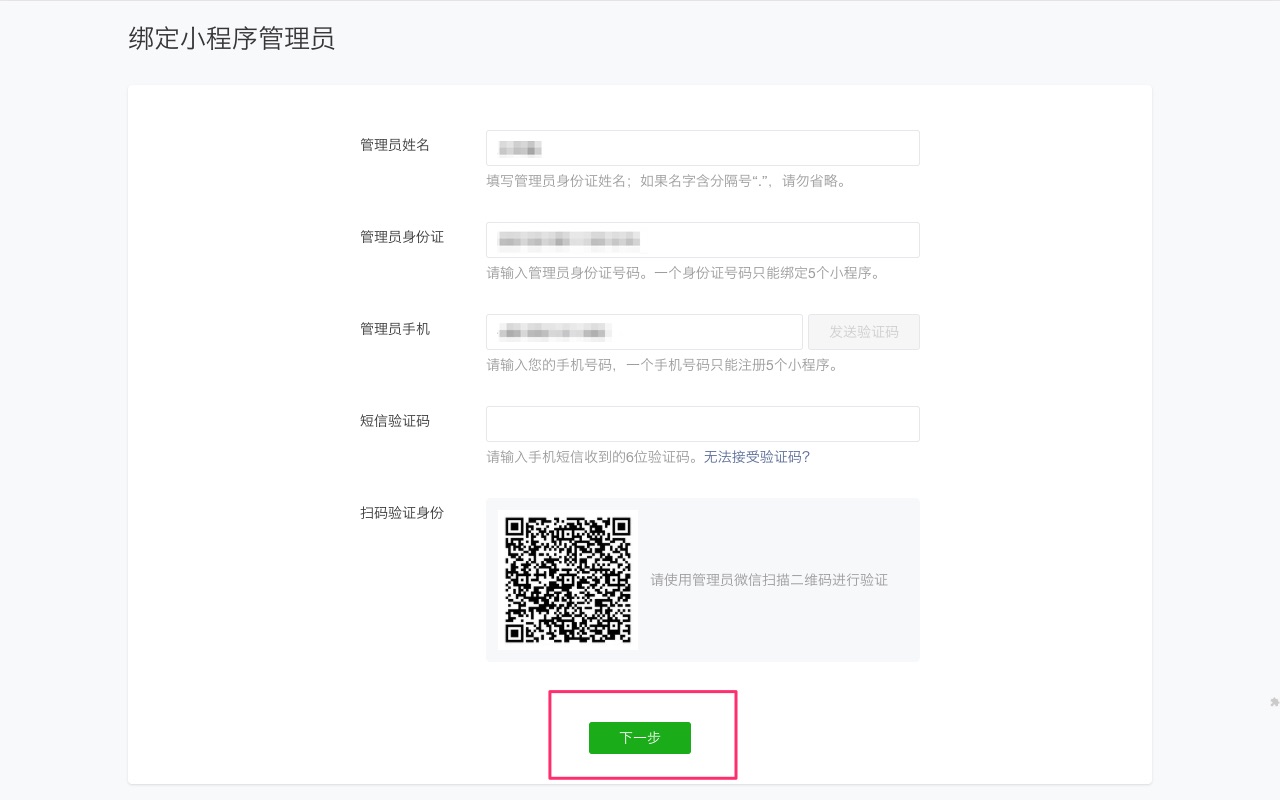第七步:绑定小程序管理员