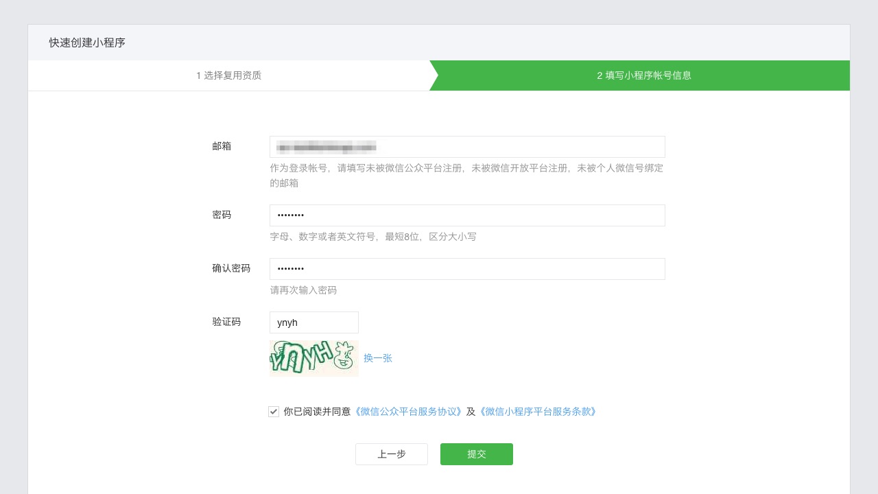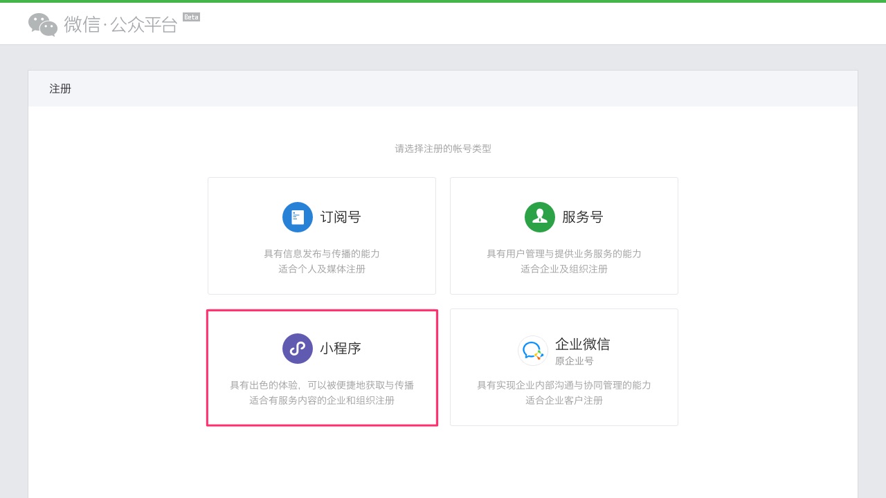 注册微信小程序账号