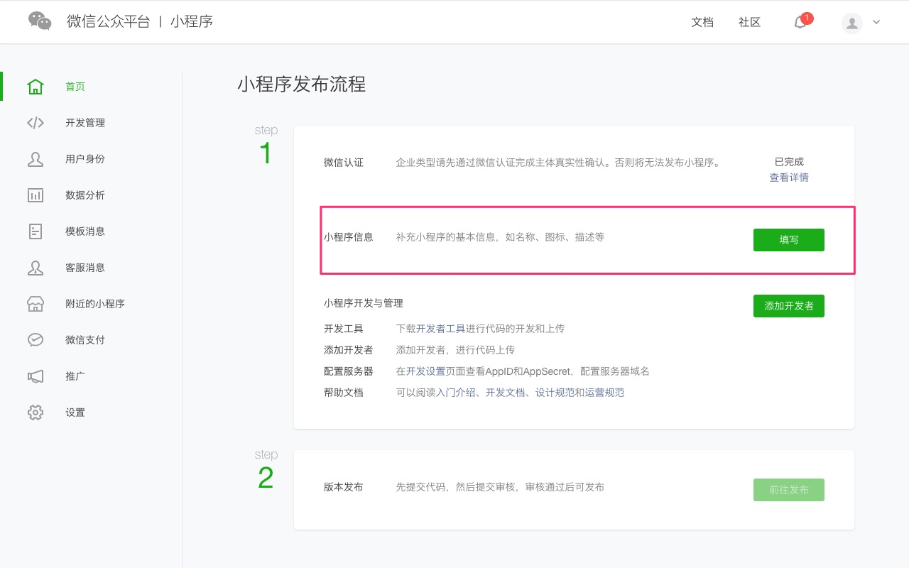 第三步:填写小程序账号信息。