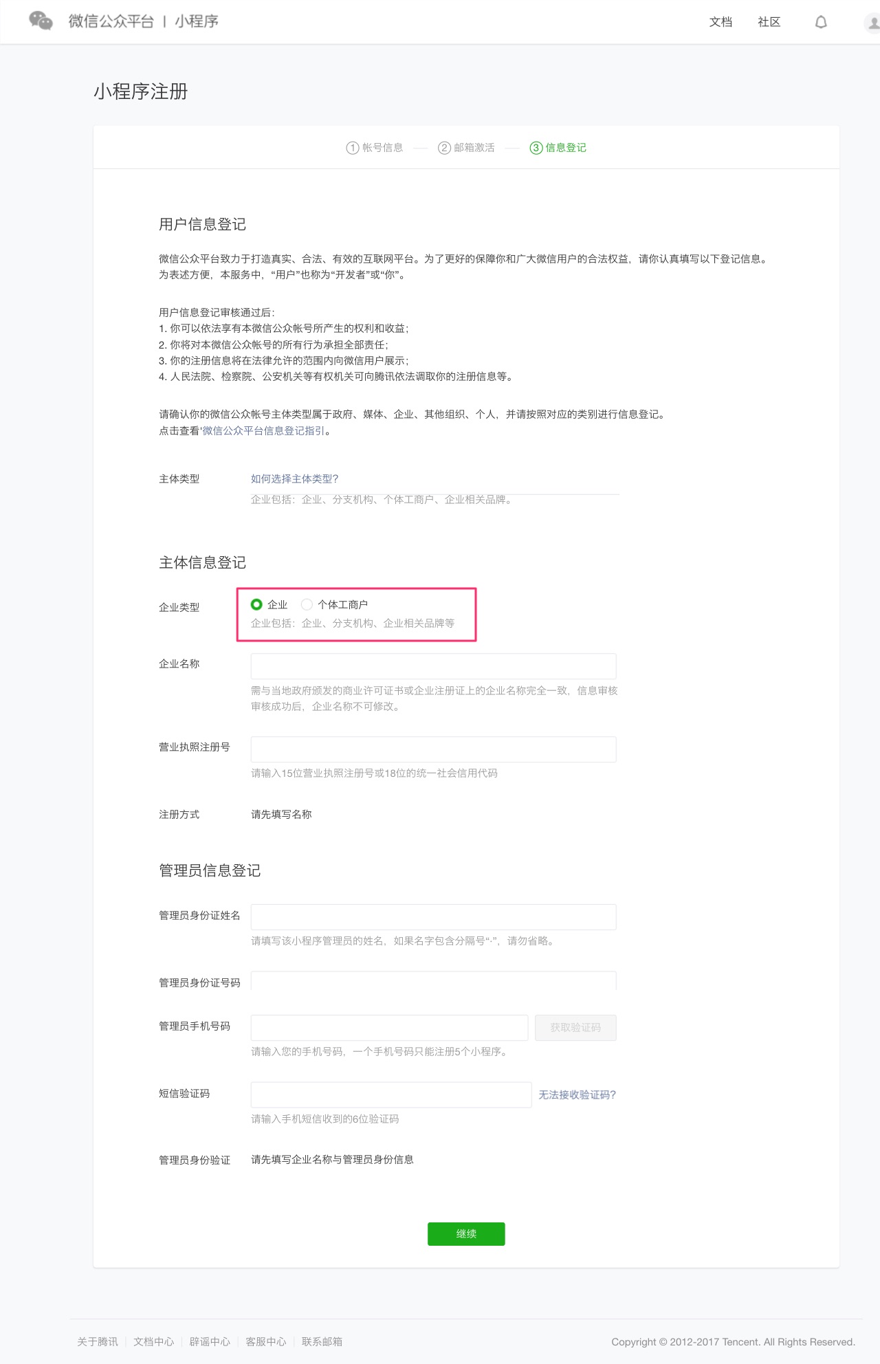 微信提供了两种注册方式: